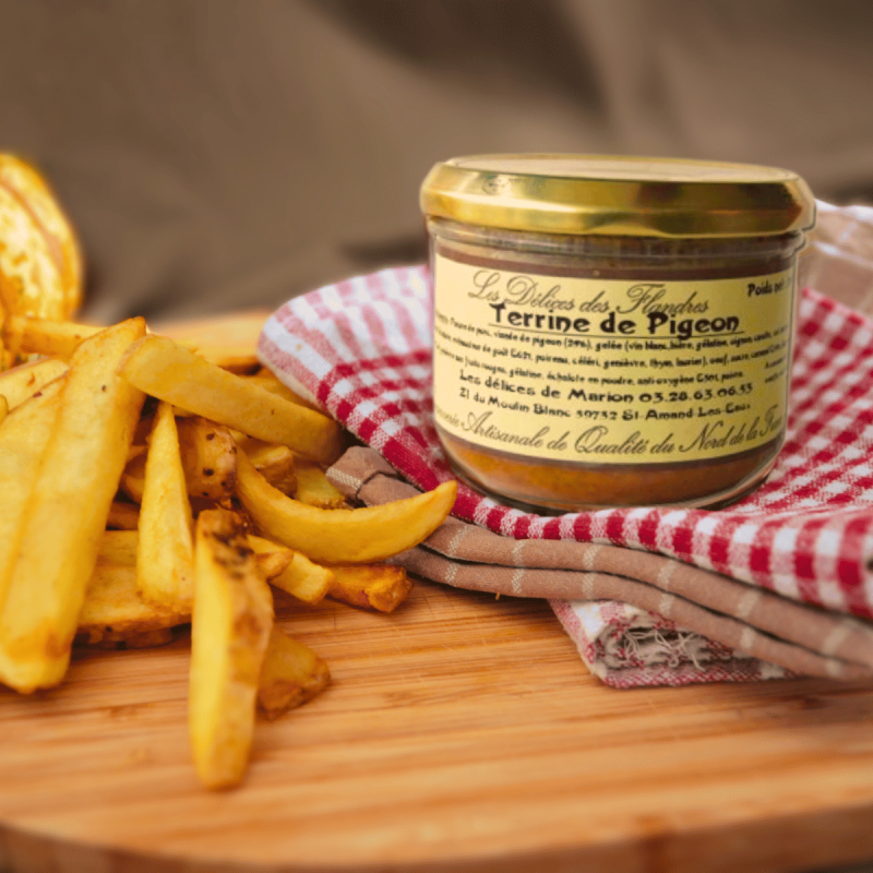 Découvrez la Terrine de Pigeon du Nord de la France et laissez-vous transporter par une expérience culinaire unique, symbole de l'authenticité et de la passion qui animent les producteurs du Nord. Commandez dès maintenant et laissez-vous séduire par ce trésor du terroir nordiste.